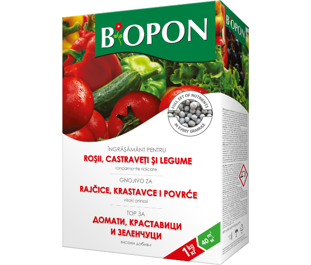 Pospješite rast svojih biljaka i pružite im uravnoteženu prehranu mineralima uz pomoć BIOPON linije gnojiva. Svako gnojivo ima svoju primjenu te dolazi s uputama kako i kada je najbolje gnojiti kulturu koju uzgajate. BIOPON granulirano gnojivo za povrće dolazi u pakiranju od 1 kg.