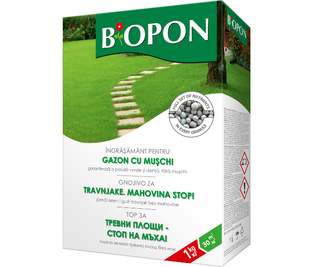 Pospješite rast svojih biljaka i pružite im uravnoteženu prehranu mineralima uz pomoć BIOPON linije gnojiva. Svako gnojivo ima svoju primjenu te dolazi s uputama kako i kada je najbolje gnojiti kulturu koju uzgajate. BIOPON granulirano gnojivo za travnjake obrasle mahovinom dolazi u pakiranju od 1 kg.